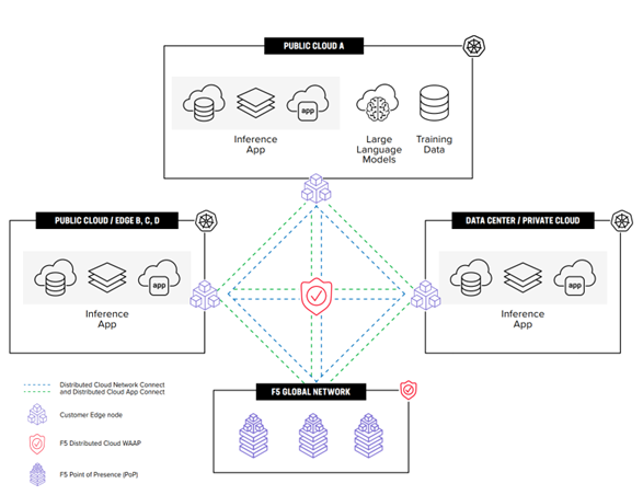 Figure 1: How F5 Distributed Cloud secure multi-cloud networking solutions can be deployed to support AI workloads anywhere.